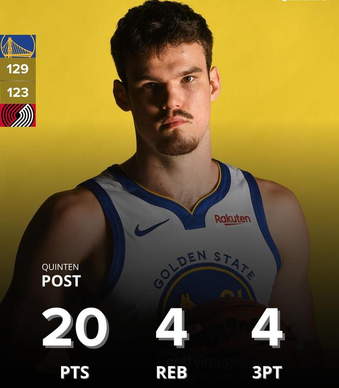 雷速体育10月9日讯 NBA季前赛,勇士129-123战胜开拓者。