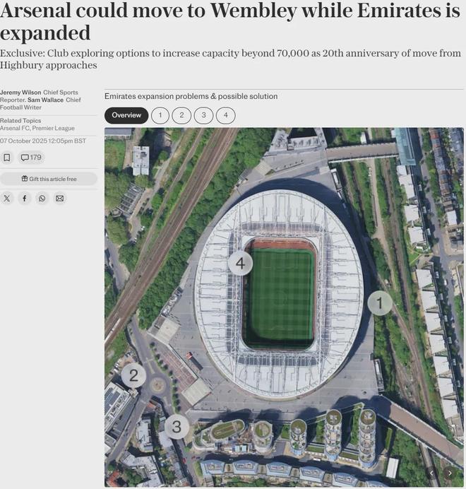 电讯报记者JW和SW联合发文表示,阿森纳正计划大规模扩建酋长球场,而这可能会导致他们暂时将主场比赛迁至温布利球场,从目前的规划细节来看,本次扩建可能将酋长球场60700人的容量扩充至70000人以上。